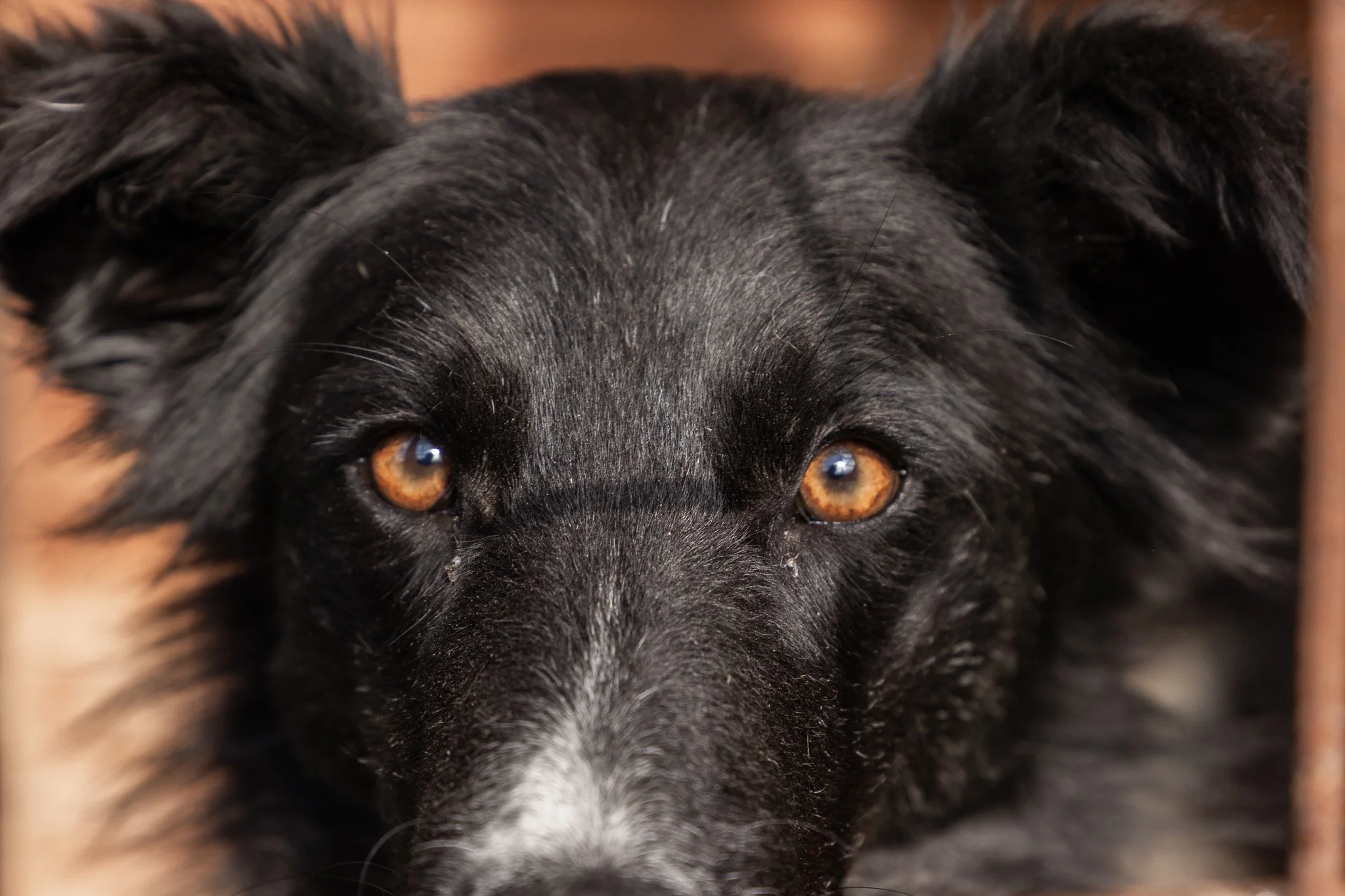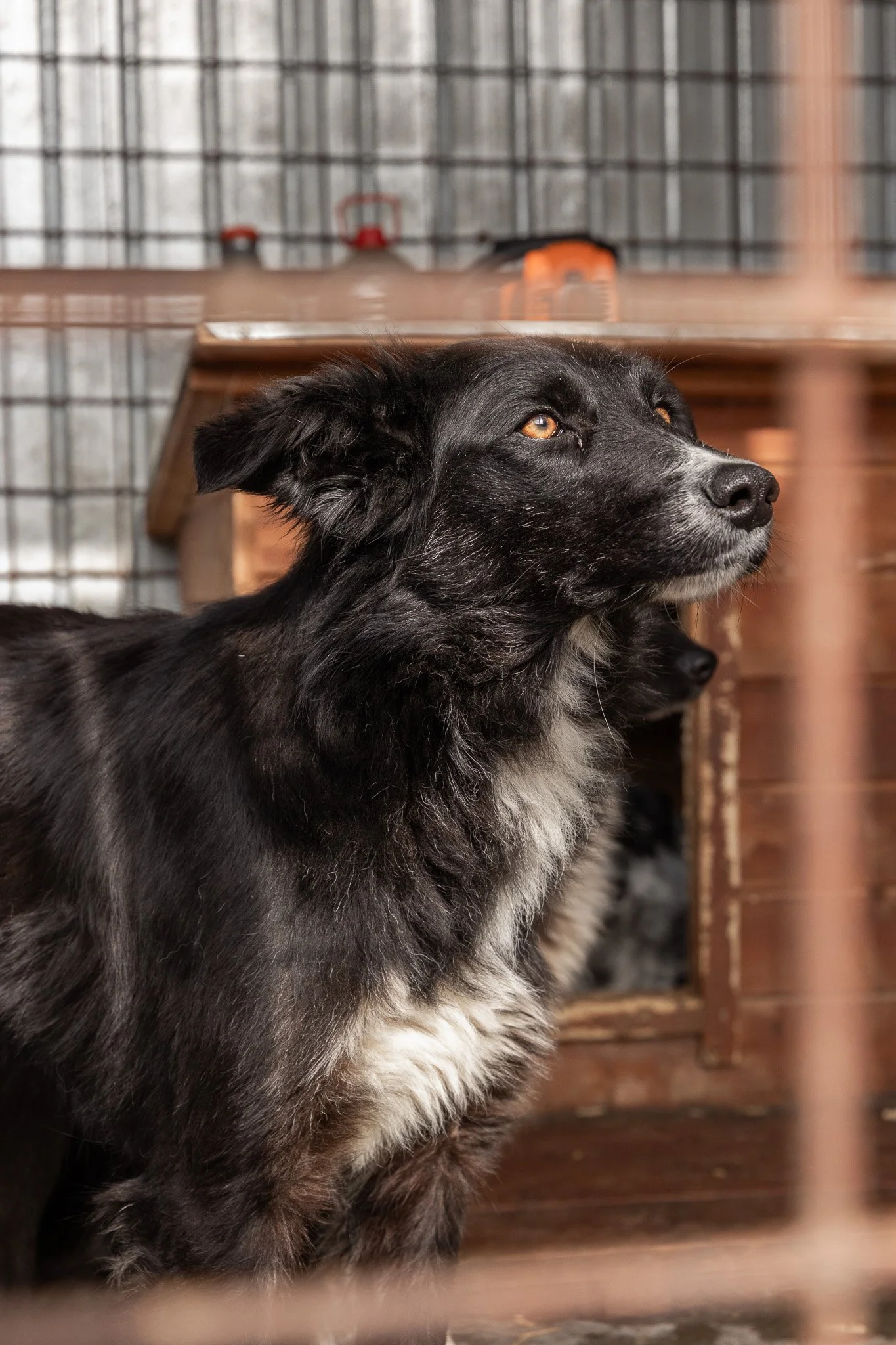 Peach ist etwa ein Jahr alt und bezaubert mit ihrem sanften Aussehen. Ihr schwarzes Fell wird von einem weißen Lätzchen, niedlichen weißen Söckchen und einem feinen weißen Strich auf der Schnauze geschmückt. Hinter diesen vorsichtigen Augen steckt eine sensible Seele, die Zeit braucht, um Vertrauen zu fassen.