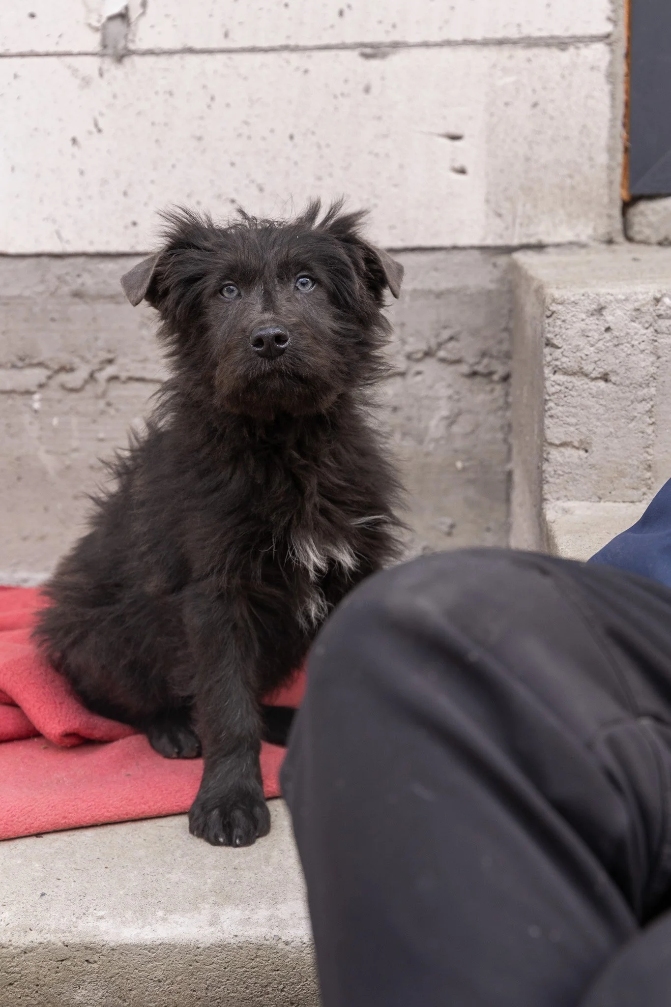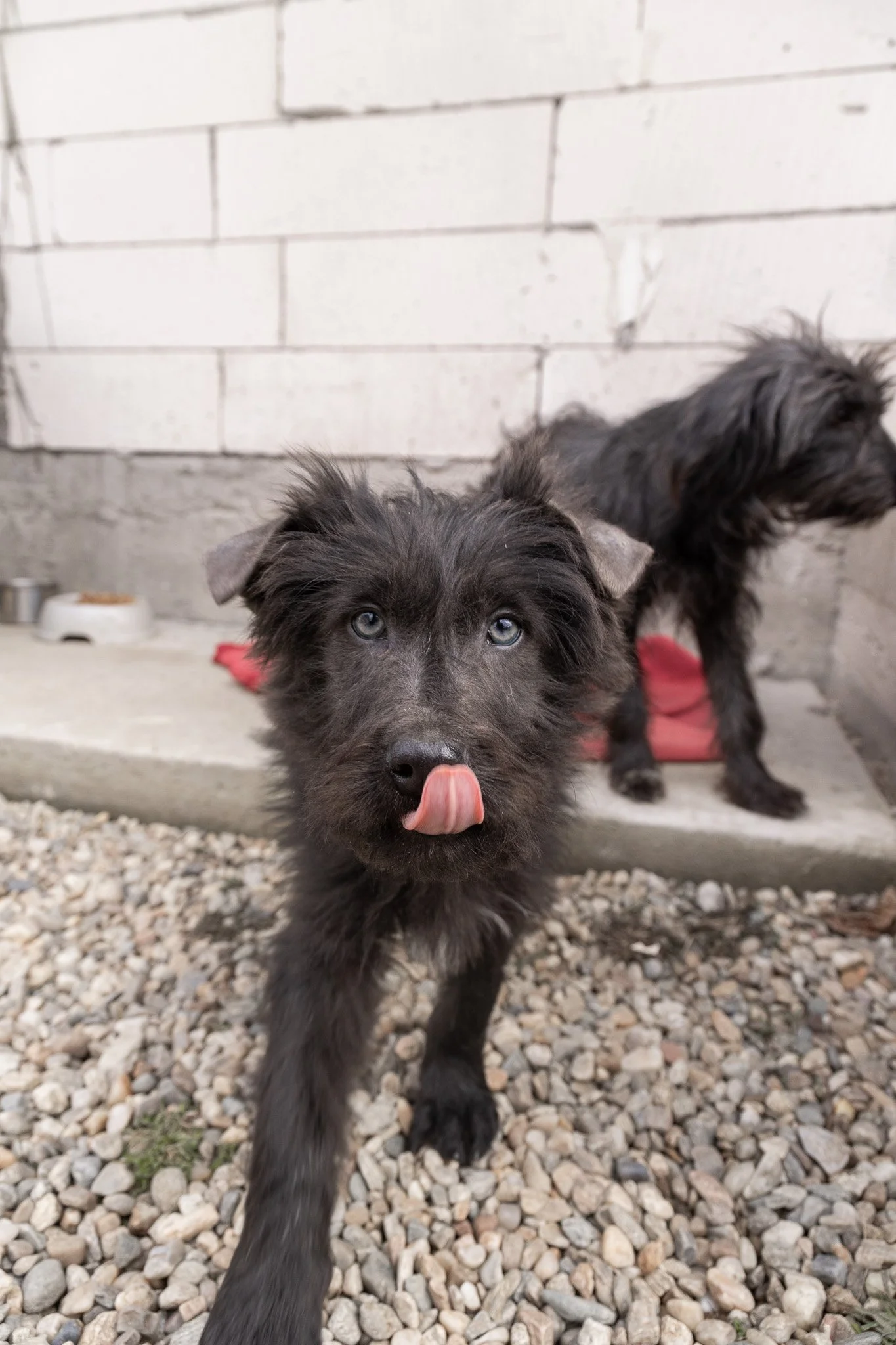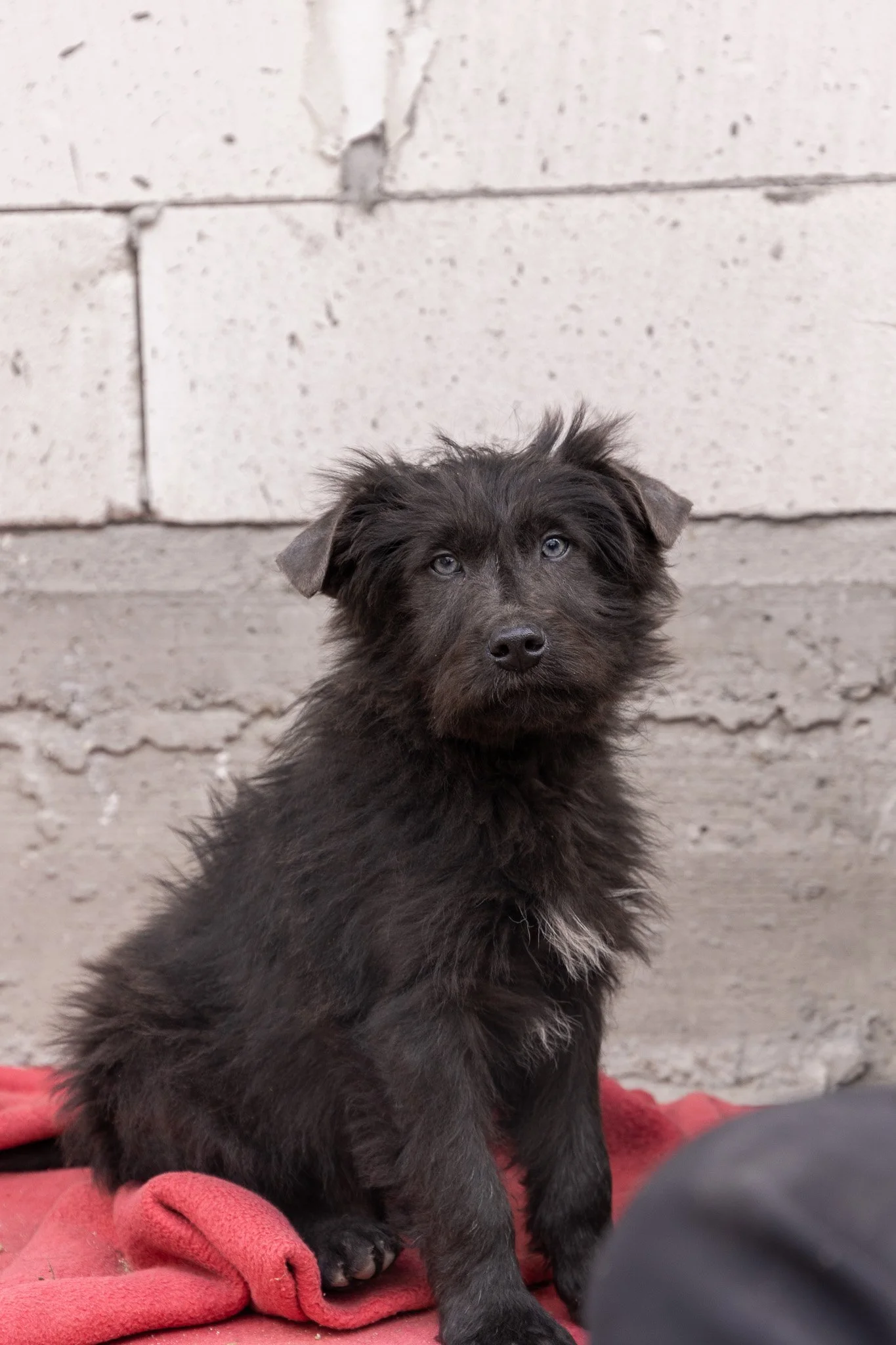 Benny ist ein optisches Phänomen: Sein Fell ist tiefschwarz und wuschelig, aber wenn er einen ansieht, bleibt die Welt kurz stehen. Er hat wunderschöne, leuchtend blaue Augen, die einen direkt ins Herz treffen. Er sieht aus wie ein kleiner Sternenhimmel in einer Winternacht.