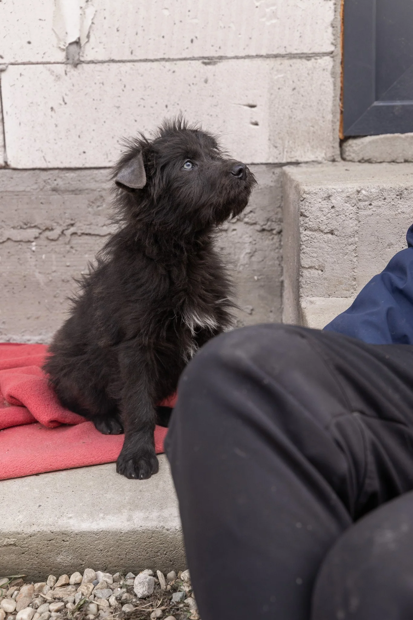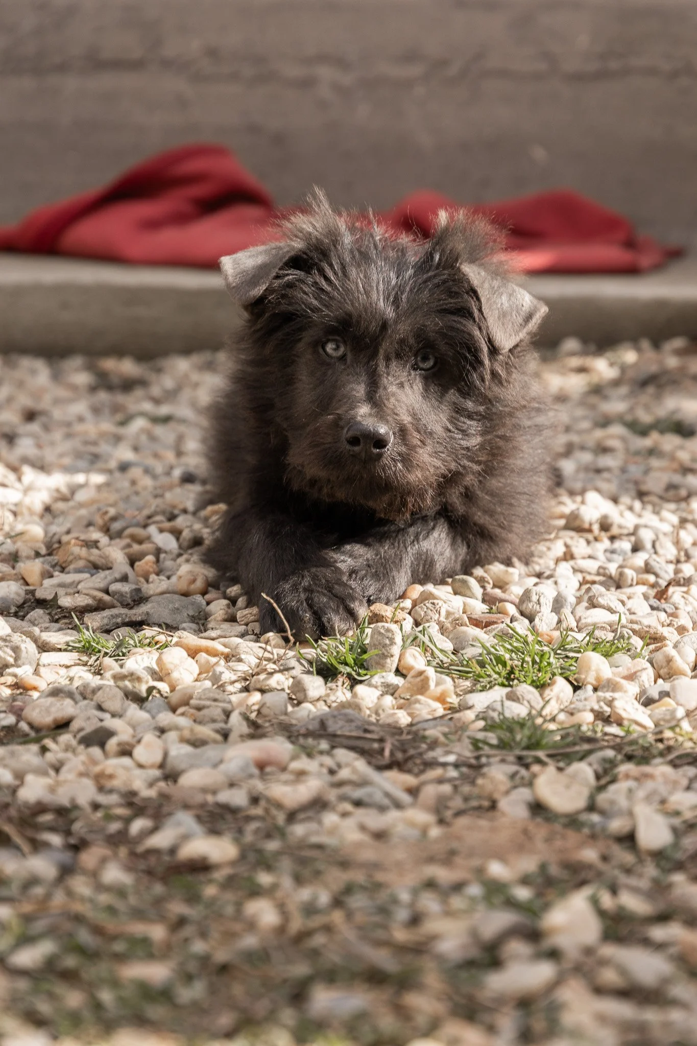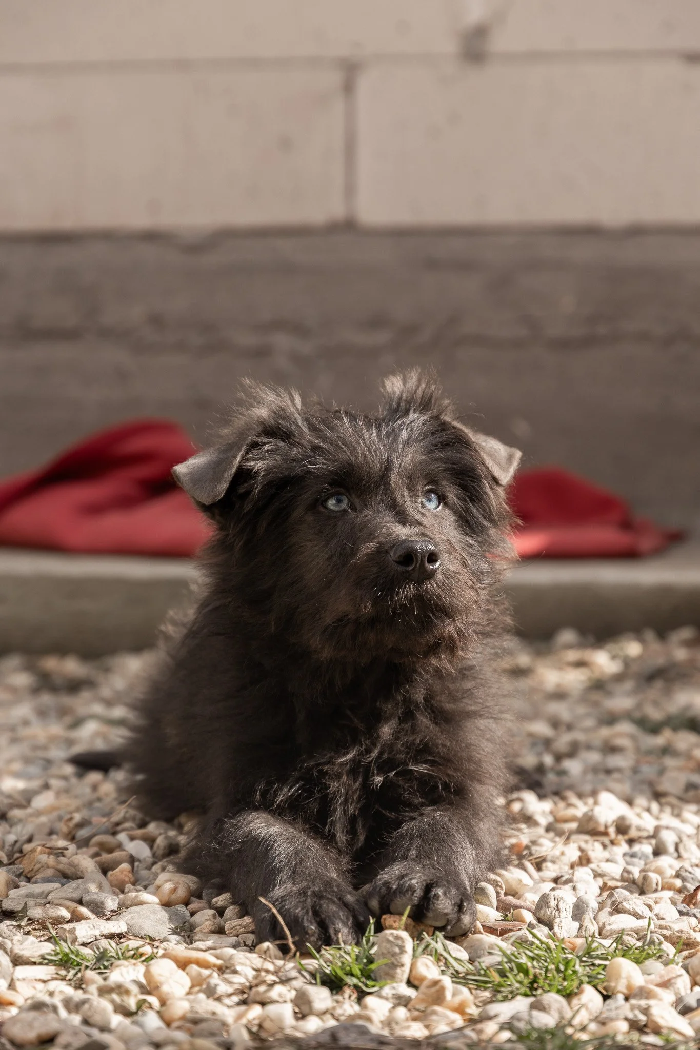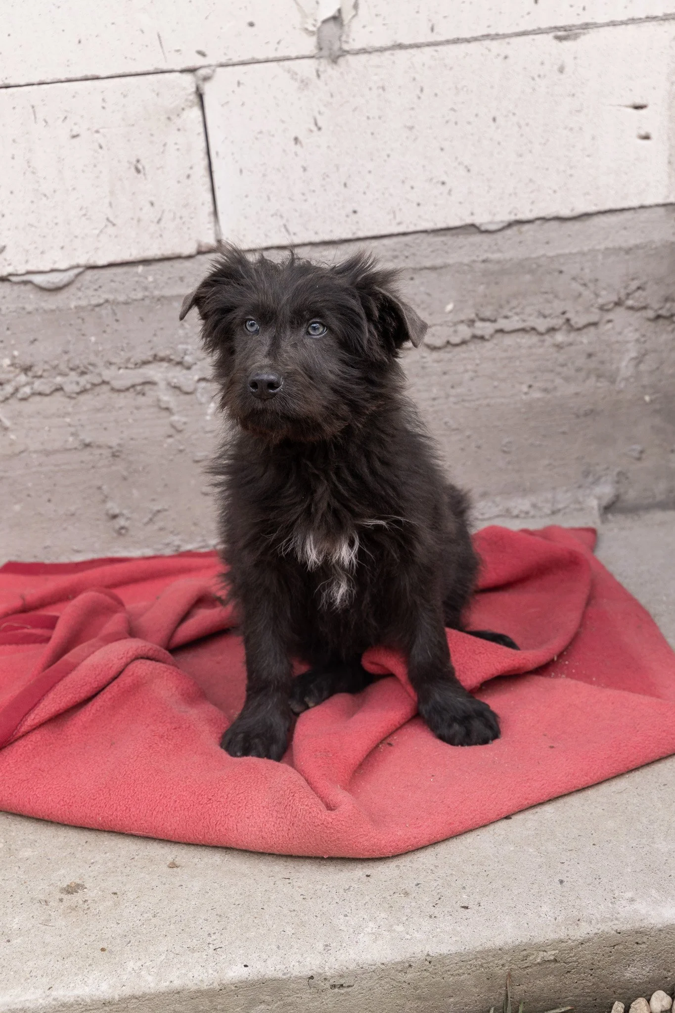 Benny ist ein optisches Phänomen: Sein Fell ist tiefschwarz und wuschelig, aber wenn er einen ansieht, bleibt die Welt kurz stehen. Er hat wunderschöne, leuchtend blaue Augen, die einen direkt ins Herz treffen. Er sieht aus wie ein kleiner Sternenhimmel in einer Winternacht.